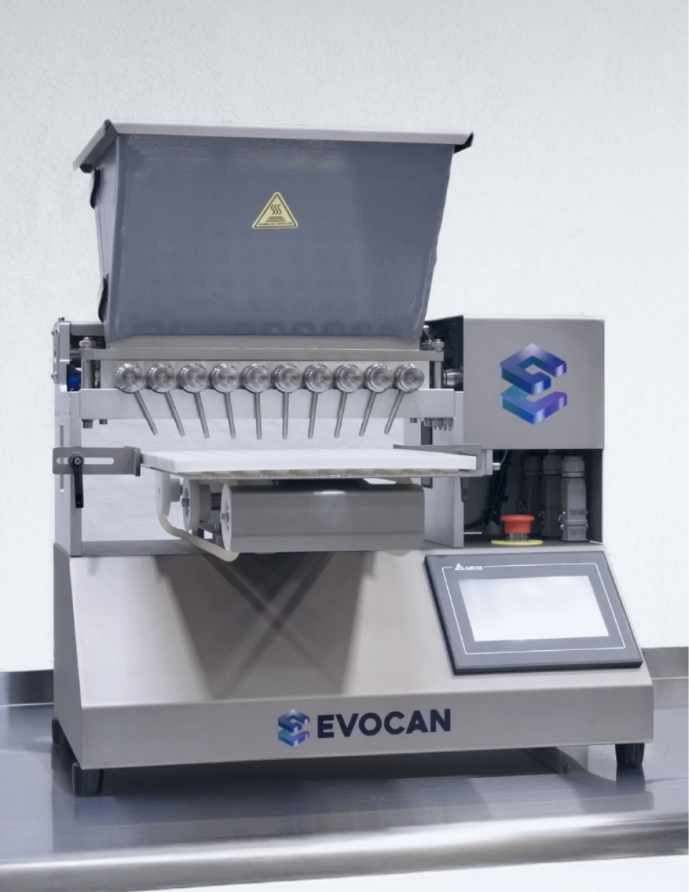 The EVOCAN Tabletop Depositor is a compact, precision-engineered machine built for confectioners who want professional-grade results without the footprint of industrial equipment. Designed for versatility, it handles a wide variety of products including gummies, chocolates, hard candies, caramels, and more. With a production capacity of 20-40 kg per hour and servo-driven accuracy, it ensures consistent deposits every time—minimizing waste and maximizing quality. Ideal for small-to-medium operations, test kitchens, or R&D labs, the Tabletop Depositor features a user-friendly interface, quick-change nozzles, and easy-clean components, making it perfect for fast-paced environments that require flexibility. Whether you’re launching a new product or scaling existing lines, this depositor empowers teams to innovate without compromise. Compact, reliable, and cost-effective—it’s a small machine with serious impact.